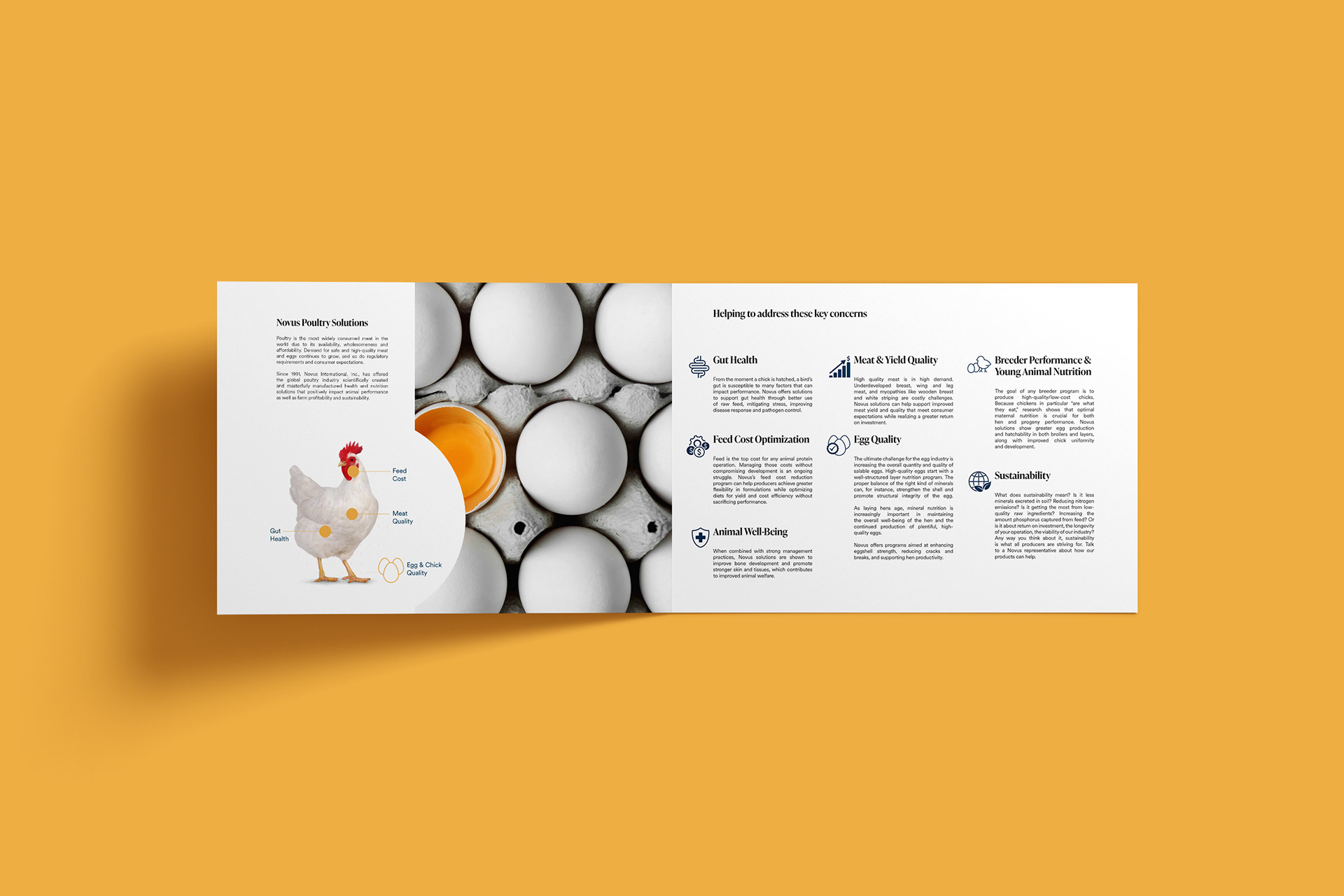 Poultry Brochure designed to help the customer understand the benefits of products better. Clean utilization of icons and graphics makes the brochure stand out from competitors.